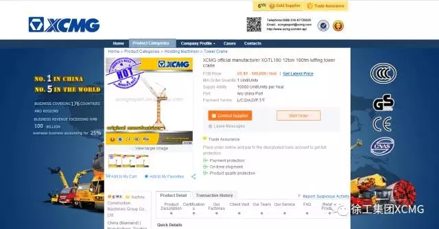 据悉,该出口订单涵盖越野轮胎起重机、伸缩臂叉装机、登高作业平台、叉车等,是中国工程机械完全依靠电子商务渠道达成的单笔出口之最,也是徐工集团积极推进业态创新、模式创新和服务创新的一次成功尝试。去年5月26日,加勒比地区客户通过跨境电子商务平台对越野轮胎起重机等多个产品发送询盘,凭借徐工优质的国际化品牌和产品形象,客户首次中国产品采购花落徐工。