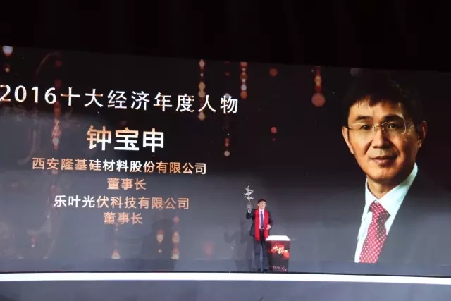 1月10日,由新浪财经举办的“2016十大经济年度人物评选”颁奖盛典在北京隆重举办,历时两个多月声势浩大的评选活动在经历了两轮激烈的网络票选、一轮备受关注的专家评审团复评后,终于顺利落下帷幕。隆基股份&乐叶光伏董事长钟宝申从众多参评企业家中脱颖而出、最终当选。