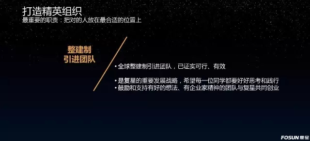2、我们特别强调要整建制地引进团队,鼓励和支持团队与复星共同创业。