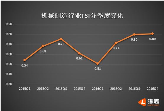 猎聘大数据研究院:机械制造行业TSI分季度变化