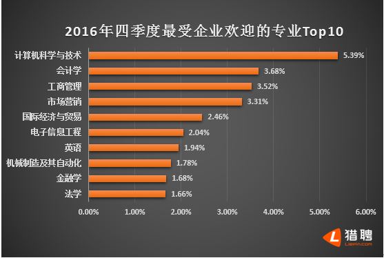 猎聘大数据研究院:2016年四季度最受企业欢迎的专业Top10
