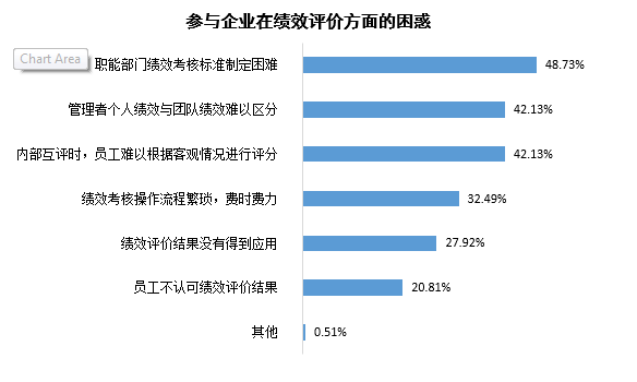 另外,有超近五成的(48.73%)的企业HR表示,在职能部门绩效考核标准制定时比较困难,而且在内部互评时,员工也难以根据客观情况进行评分等。