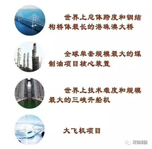 世界上总体跨度和钢结构桥体最长的港珠澳大桥,全球单套规模最大的煤制油项目核心装置,世界上技术难度和规模最大的三峡升船机,大飞机项目……这些高大上项目,都有河钢产品。
