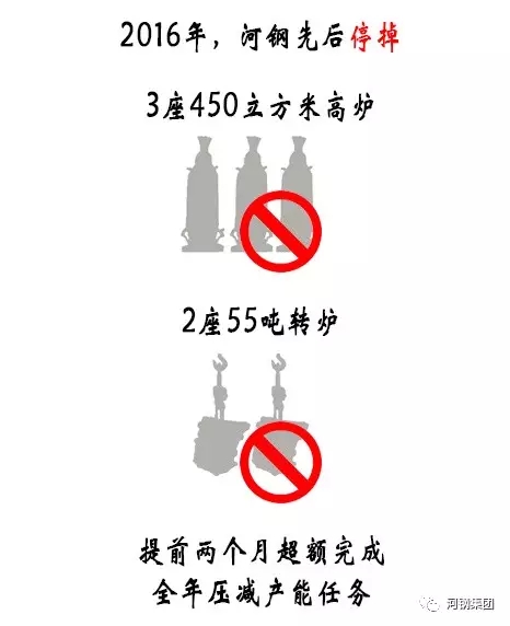 2016年,河钢先后停掉3座450立方米高炉、2座55吨转炉,提前两个月超额完成全年压减产能任务。