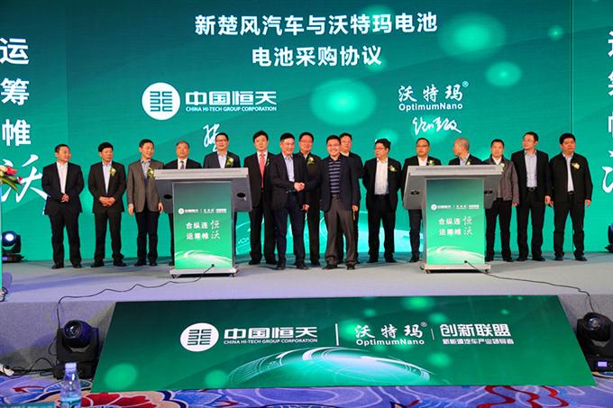 与此同时,沃特玛创新联盟理事长单位——沃特玛电池还与恒天集团旗下湖北新楚风汽车有限公司签署合作协议,新楚风在2017年将向沃特玛采购约2万套动力电池,总价款超过13.48亿元!
