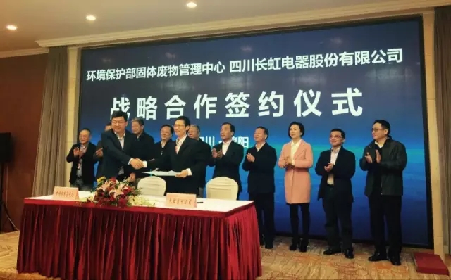 3月23日,环境保护部固体废物管理中心与四川长虹电器股份有限公司在绵签署关于共同开展生产者责任延伸制研究的战略合作协议,共同推进生产者责任延伸制度的落实,为国家政策、标准及技术规范的制定提供基础数据和参考。