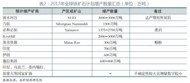 据相关数据显示,随着巴西淡水河谷S11D、ROYHILL逐步增加产量以及印度、伊朗等国家铁矿石供给量的投放,2017年全球新增铁矿石供给量将至少在5000万吨以上,因此,除了中国港口与日俱增的铁矿石库存,新晋市场供应带来的铁矿石基本面的压力也将迫使铁矿石价格下行。