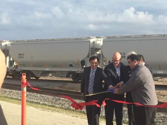 随后,在全体人员和当地媒体的见证下,余卫平、胡海平、威尔明顿市市长比尔、VRC公司CEO唐纳德、VRC公司股东汤先生共同为交付庆典仪式剪彩,首列30辆铁路货车整车缓缓驶出正式向客户交付,该项目笔订单共计300辆。
