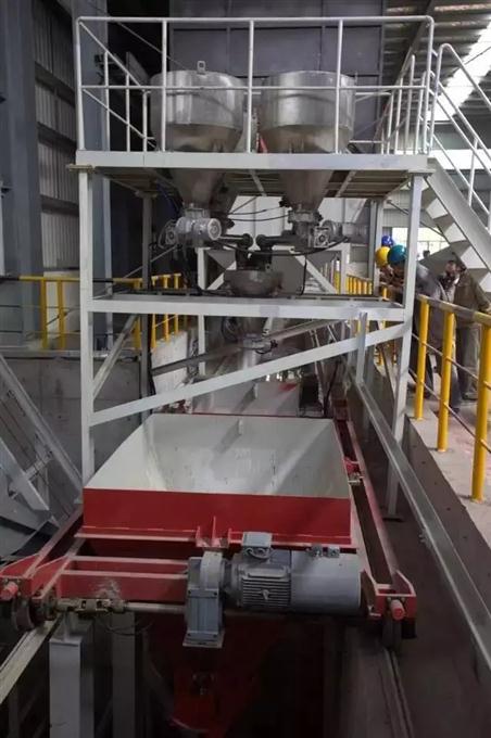 ▲由电脑控制精确计量后投入输料小车,完成撒料