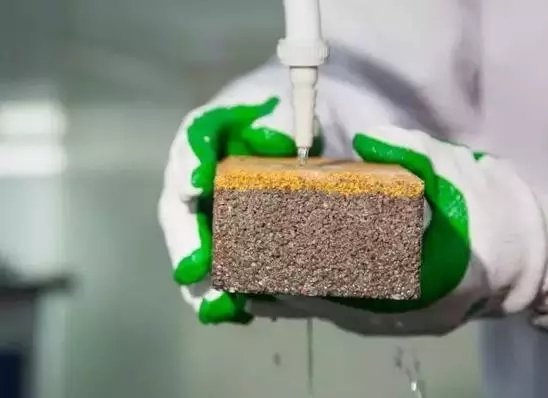 目前,该产线试生产的透水砖,透水系数达行业A级标准,最高强度可达c40,不仅可以轻松应用到人行道、广场,更无惧停车场车辆碾压。此外,以钢铁渣为主要原料的透水砖还具有耐磨性好、抗冲击、抗冻融等特点。