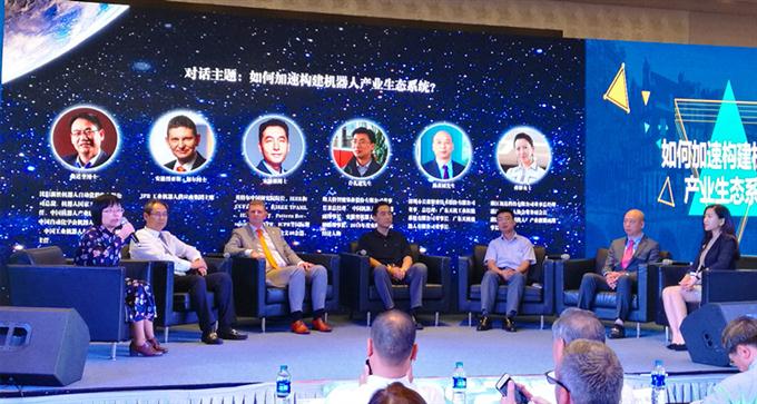 7月5日,由中国机械工业联合会、中国机器人产业联盟共同主办的2017中国国际机器人产业发展高峰论坛在上海隆重举行。论坛专门设立了对话交流环节,中国机器人产业联盟理事长、沈阳新松有限公司总裁曲道奎,埃夫特智能装备股份有限公司董事长兼总经理许礼进、英特尔中国研究院院长宋继强等一众大咖亮相。