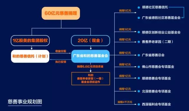 捐赠仪式上,和的慈善基金会发布了总额60亿元人民币的捐赠计划,包含股权捐赠和现金捐赠两个部分。这些善款将由专业的公益慈善机构负责慈善项目的规范运作。