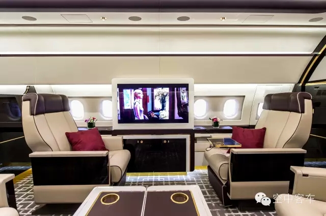 这架ACJ319公务机能够搭载19名乘客,其中包括15个可由数字控制面板进行调节的可全平躺的座椅。同时,这架飞机的无线网络覆盖可令客舱管理系统(CMS)和机上娱乐系统(IFE)完全实现无线连接。