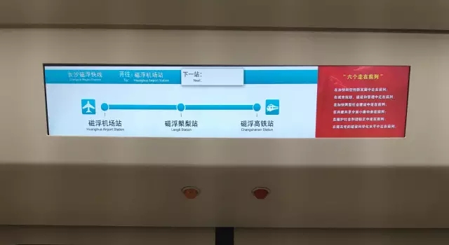 3、长沙磁浮列车均由3节车组成,每节车4块lcd动态地图,2块led显示屏。