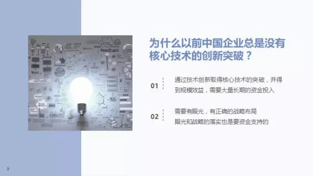 每一次的技术突破,其实都是要有战略布局。企业家要有眼光,要有正确的战略布局,同时要有更大的资金投入。