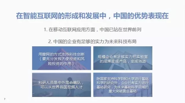 而在这个时刻,光明的未来在哪儿呢?在智能互联网、智能社会形成过程中,中国已经在几个方面表现出优势。