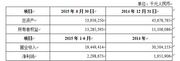 根据普华永道中天会计师事务所(特殊普通合伙)出具的《审计报告》(普华永道中天北京审字(2015)第191号),以及交易对方在北京金融资产交易所披露的2015年1至6月份财务数据(未经审计),中华联合保险最近一年一期的主要财务数据(合并报表)如下: