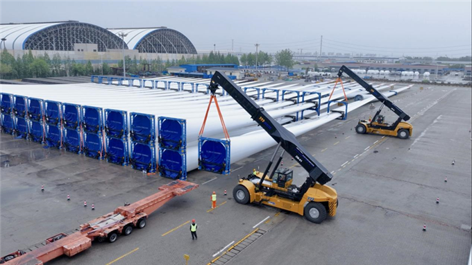 四月,由徐工与扬州港联合研发的国产最大吨位风电正面吊“落户”扬州港。应用一个季度以来,两台正面吊风电货种装卸利用率达85%,平均每台每天使用超8小时,满足了风电叶片、塔筒、轮毂及机舱等多货种件杂货的装卸要求,至6月...