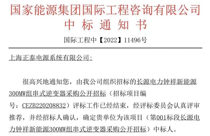 11月8日,正泰电源成功中标长源电力钟祥新能源300MW组串式逆变器采购。该项目中标的250kW逆变器是专业的地面电站用组串式逆变器,适用于各种环境下的地面光伏电站,拥有全方位的保护措施、云端智能监控及故障排查功能、灵...