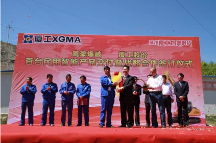 4月28日,厦工股份与鹰豪爆破公司在河南举行民用智能产品交付暨战略合作签约仪式。厦工XG822i智能挖掘机产品凭借先进的技术优势、独一无二的性能特点,获得鹰豪爆破公司的高度认可,正式入列鹰豪爆破公司的设备战队。