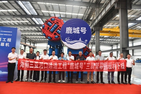 7月4日,由铁建重工、铁四院、中铁二十局和北京深林开物联合研发的全球首台三圆组合管幕机“鹿城号”在铁建重工长沙第三产业园下线。