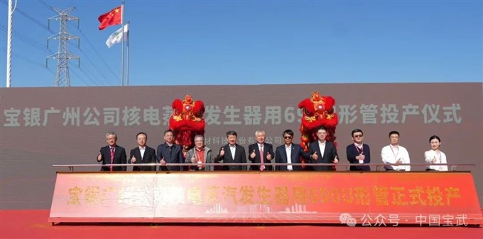 11月29日上午,在粤港澳大湾区地理几何中心——广州市南沙区,宝武特冶旗下宝银广州公司核电蒸发器用690U形管项目正式投产。