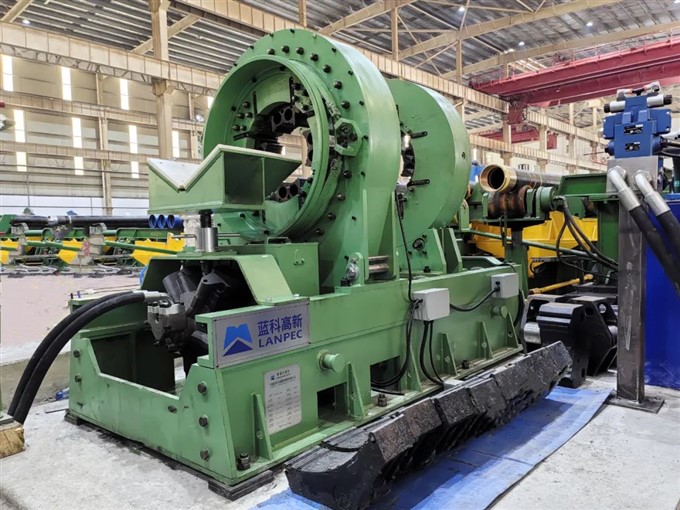 蓝科石化20″超大扭矩石油勘探管材接箍拧接机投产运行