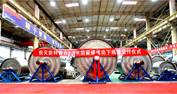 由中国航天科技集团有限公司四院7414厂所属航天新科公司研制的国内目前最大直径锂电铜箔装备阴极辊——直径3.6米阴极辊新品正式下线并顺利交付客户。