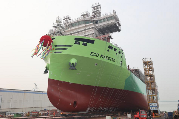 国机集团建造的全国首艘支线甲醇双燃料集装箱船顺利下水