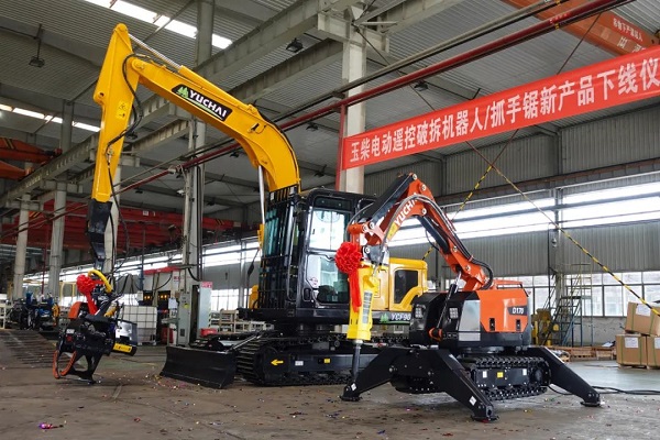上新!玉柴重工电动遥控破拆机器人及遥控抓手锯成功下线