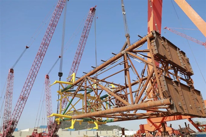 12月1日沙特阿美CRPO149项目导管架在海油工程青岛场地完成吊装翻身作业这是海油工程首次创新应用导管架翻身建造模式也是青岛场地新建800吨龙门吊首次吊装作业对进一步提升中国海油工程建造能力具有重要意义本次“翻身...