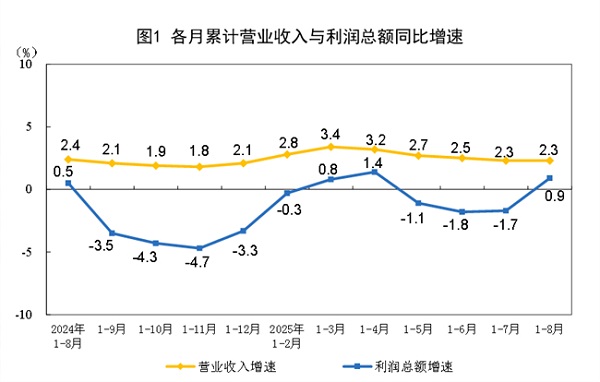 2025年1—8月份全国规模以上工业企业利润增长0.9%