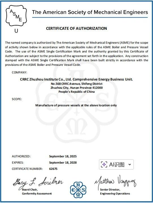 近日,中国中车集团旗下中车株洲所核心制氢设备获得ASME(美国机械工程师协会)和CE-PED(欧盟压力设备指令)两项国际认证,两项认证均由国际第三方权威检测、认证机构必维集团颁发。此次认证获取标志着中国中车在大规模制氢...