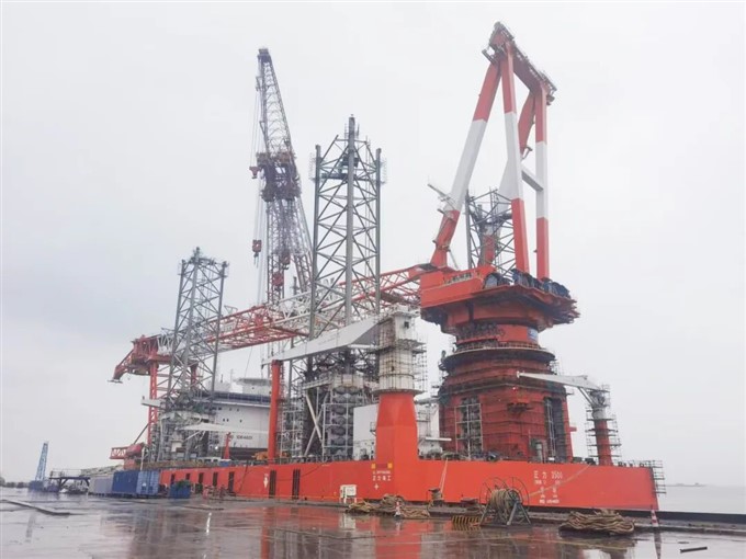全球同类吊重最大的海上风电安装平台完成起重机总装作业