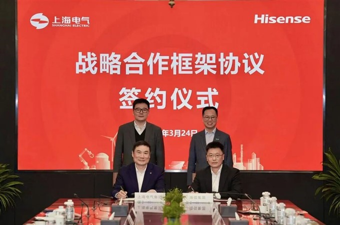 3月24日下午,在上海电气集团党委书记、董事长吴磊和海信集团控股股份有限公司(以下简称“海信集团”)党委书记、董事长贾少谦的共同见证下,上海电气和海信集团正式签署战略合作协议。上海电气集团党委副书记、总裁朱兆开,海...