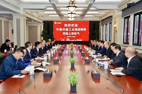 11月6日下午,中国兵器工业集团有限公司党组成员、副总经理史志荣到访上海电气,与上海电气集团党委委员、副总裁贾廷纲就共同服务国家战略、拓展多领域合作进行深入交流。