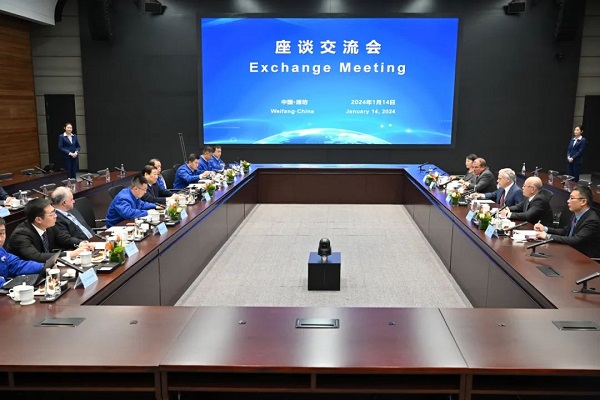 1月14日下午,潍柴动力与美国EControls公司在潍柴签署战略合作协议,谭旭光与美国EControls公司CEO肯农·古列尔莫座谈交流并见签。