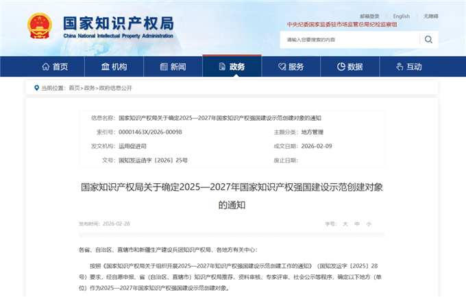 近日,国家知识产权局正式发布《关于确定2025—2027年国家“知识产权强国”建设示范创建对象的通知》,山东临工成功入选国家知识产权示范企业创建对象。这一国家级权威认定,是对公司知识产权创造、运用、保护、管理全链条能力的...