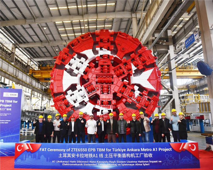 近日,一台直径6.55米的土压平衡盾构机在铁建重工长沙第一产业园区顺利验收下线,将助力土耳其安卡拉地铁建设。验收现场,这台身披红白配色的盾构机刀盘格外醒目,刀盘上的星月图案与土耳其国旗元素交相辉映。客户代表及铁...