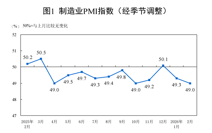 国家统计局服务业调查中心中国物流与采购联合会一、中国制造业采购经理指数运行情况2月份,制造业采购经理指数(PMI)为49.0%,比上月下降0.3个百分点,制造业景气水平有所回落。从企业规模看,大型企业PMI为51.5%,比上月上...