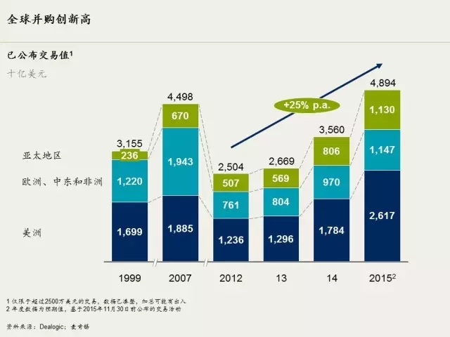 不管是在全球范围还是美国一地,2015年企业并购活动均创历史新高,大型并购尤其突出。亚洲企业的并购也创下历史纪录