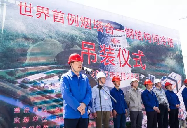 现场,设计塔高170米的首件主结构倒三角单元在吊装人员娴熟的操作和安装人员默契的配合下安装完成,标志着这项钢结构塔“烟塔合一”间接空冷新技术在我国火电行业率先得到了实际工程应用。