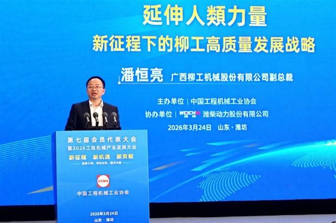 2026年3月24日,以“新征程 新机遇 新贡献——数智引领、绿动未来、融合共赢”为主题的2026工程机械产业发展大会(以下简称产业大会)在山东潍坊召开。会上,广西柳工机械股份有限公司副总裁潘...